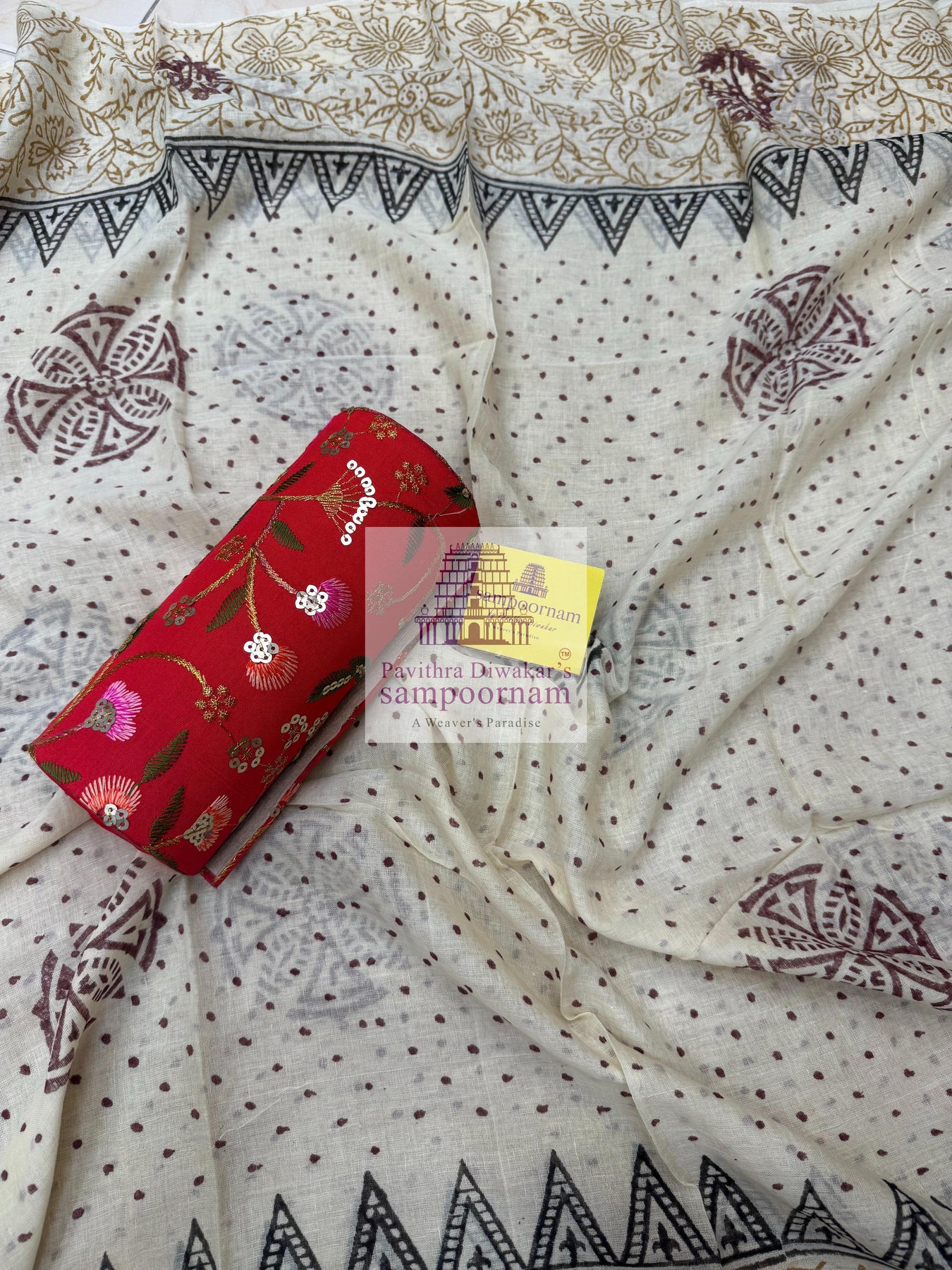 - Sampoornam Creations cannot be held responsible for any damage that occurs to the saree/accessories after purchase due to rain, overuse, stains, incorrect cleaning and care, and other normal wear and tear.