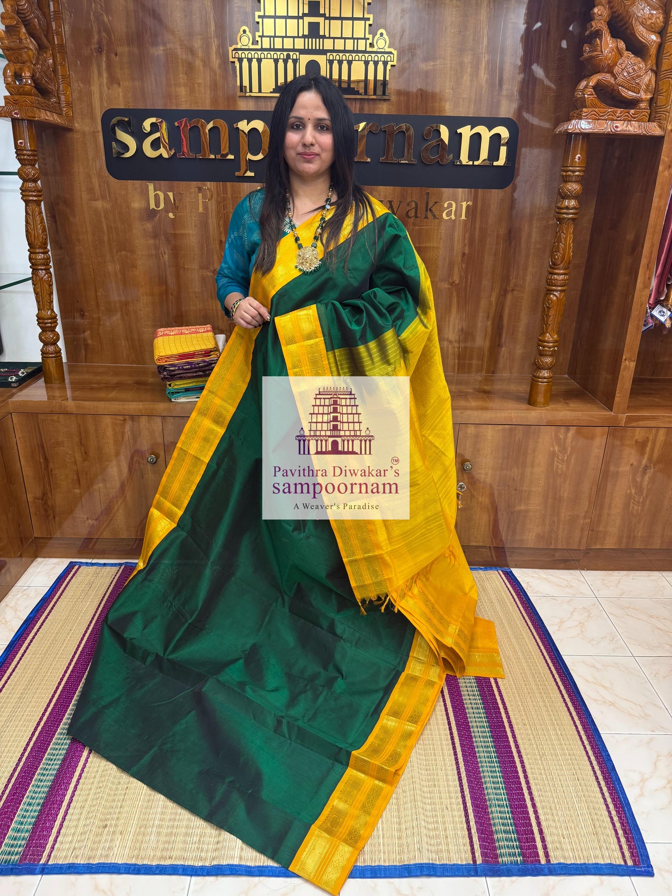 - Sampoornam Creations cannot be held responsible for any damage that occurs to the saree/accessories after purchase due to rain, overuse, stains, incorrect cleaning and care, and other normal wear and tear.