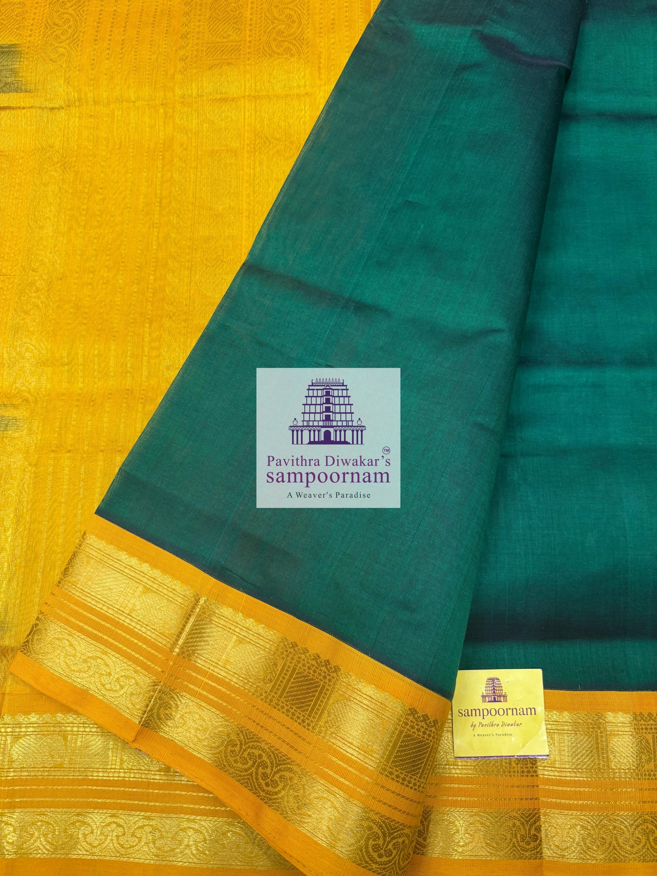 Dark Green with Mustard , rettapet border and grand Pallu Silk Cotton Saree