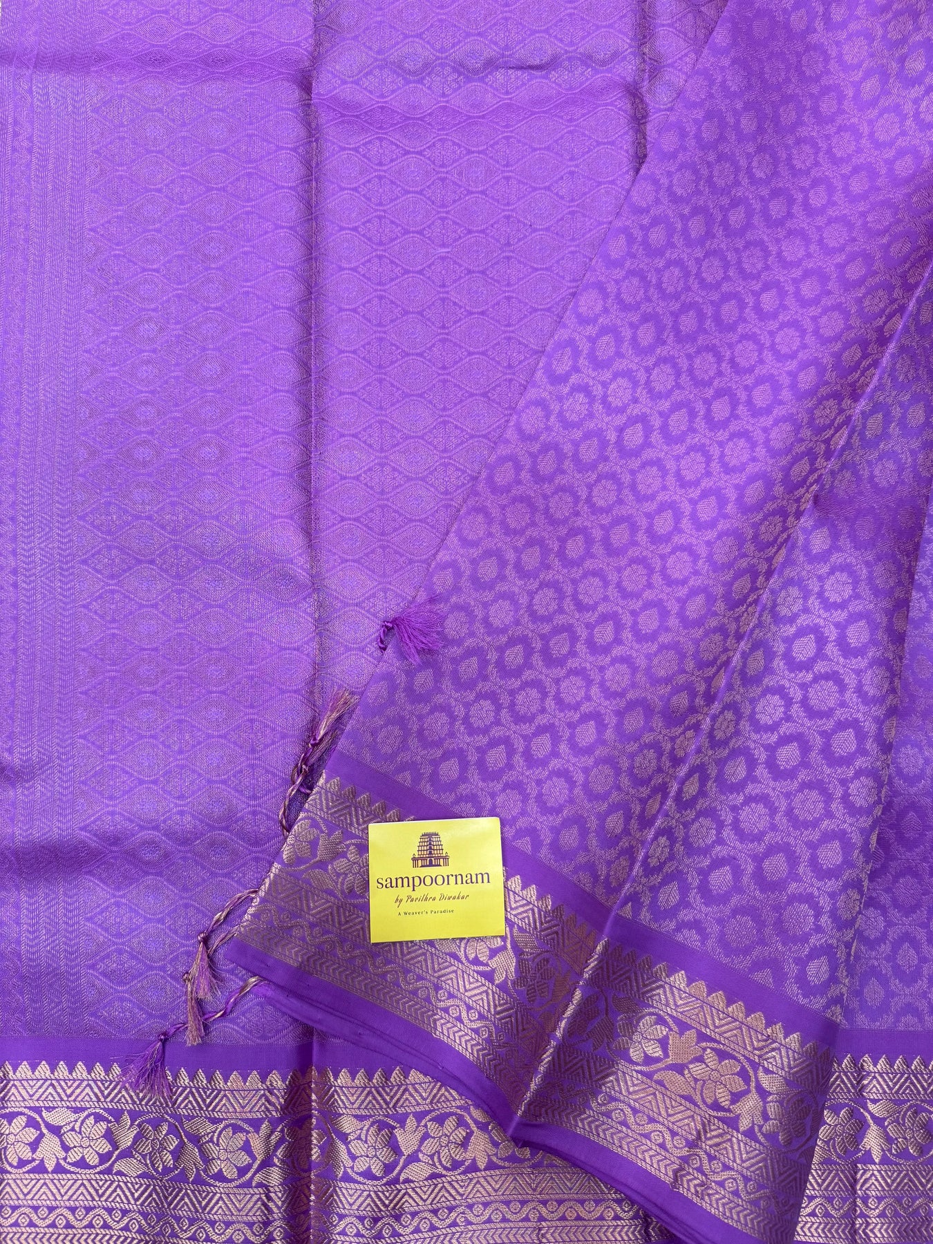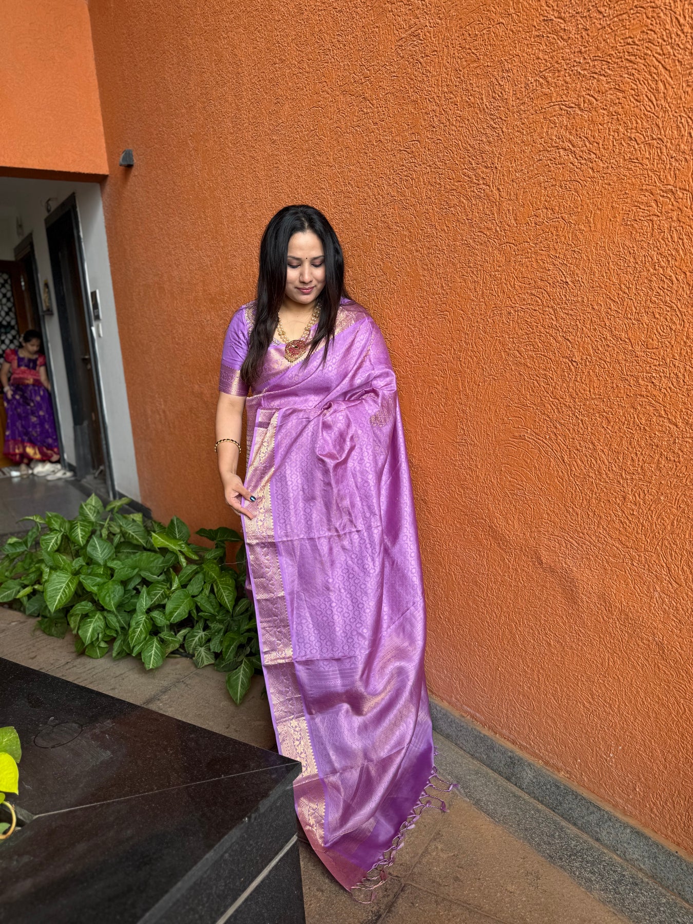 Lilac colour with Floral Banarasi rich Zari butta and Grand Gold Zari border , Pure Soft Silk Saree