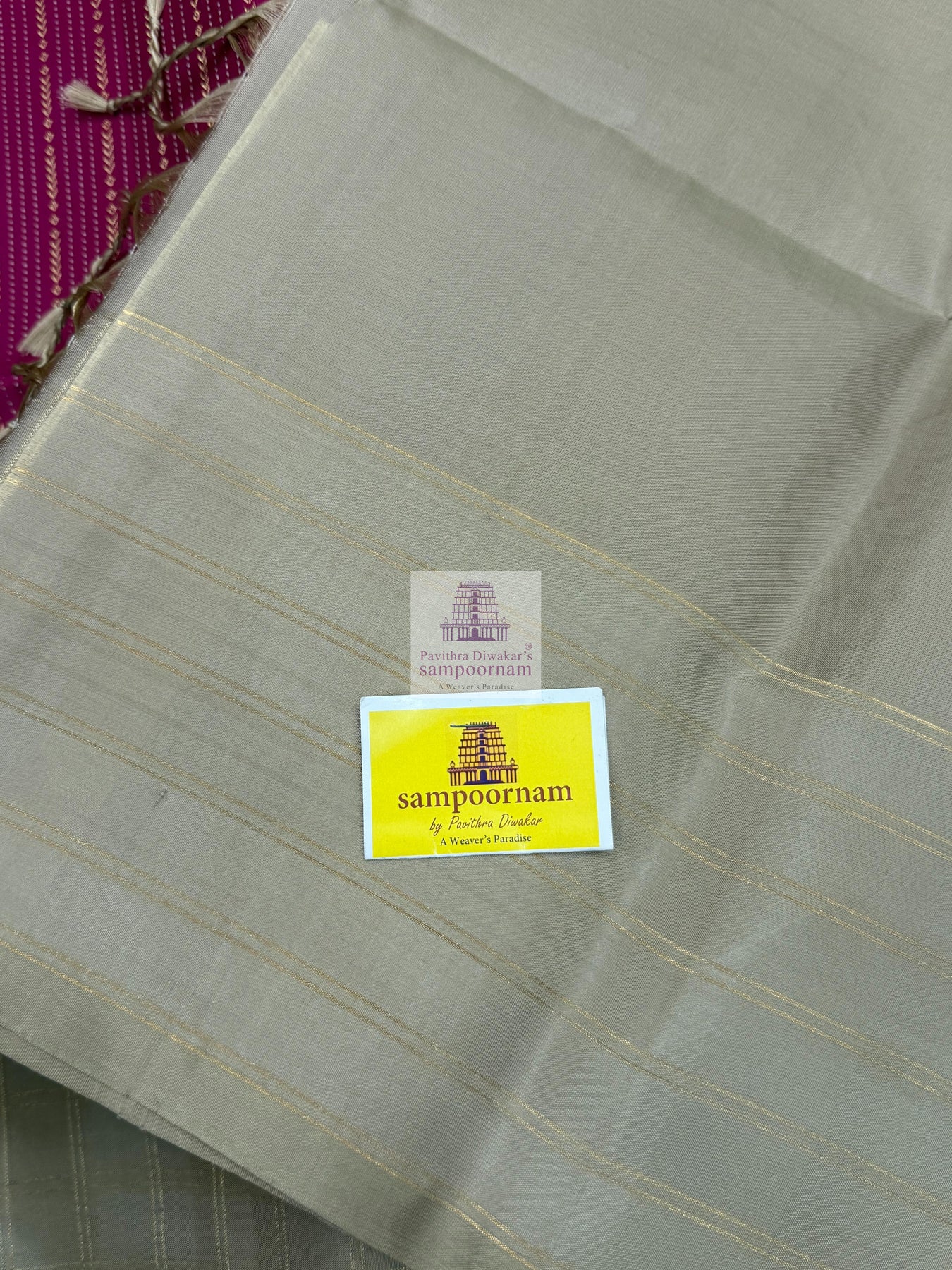 Vadamalli with Beige , Zari checks in the border , Vertical Gold and Silver lines in the body and rich Pallu Pure Soft Silk Saree