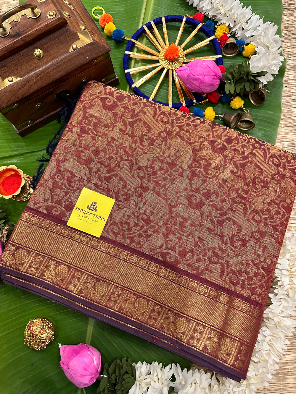 - Sampoornam Creations cannot be held responsible for any damage that occurs to the saree/accessories after purchase due to rain, overuse, stains, incorrect cleaning and care, and other normal wear and tear.