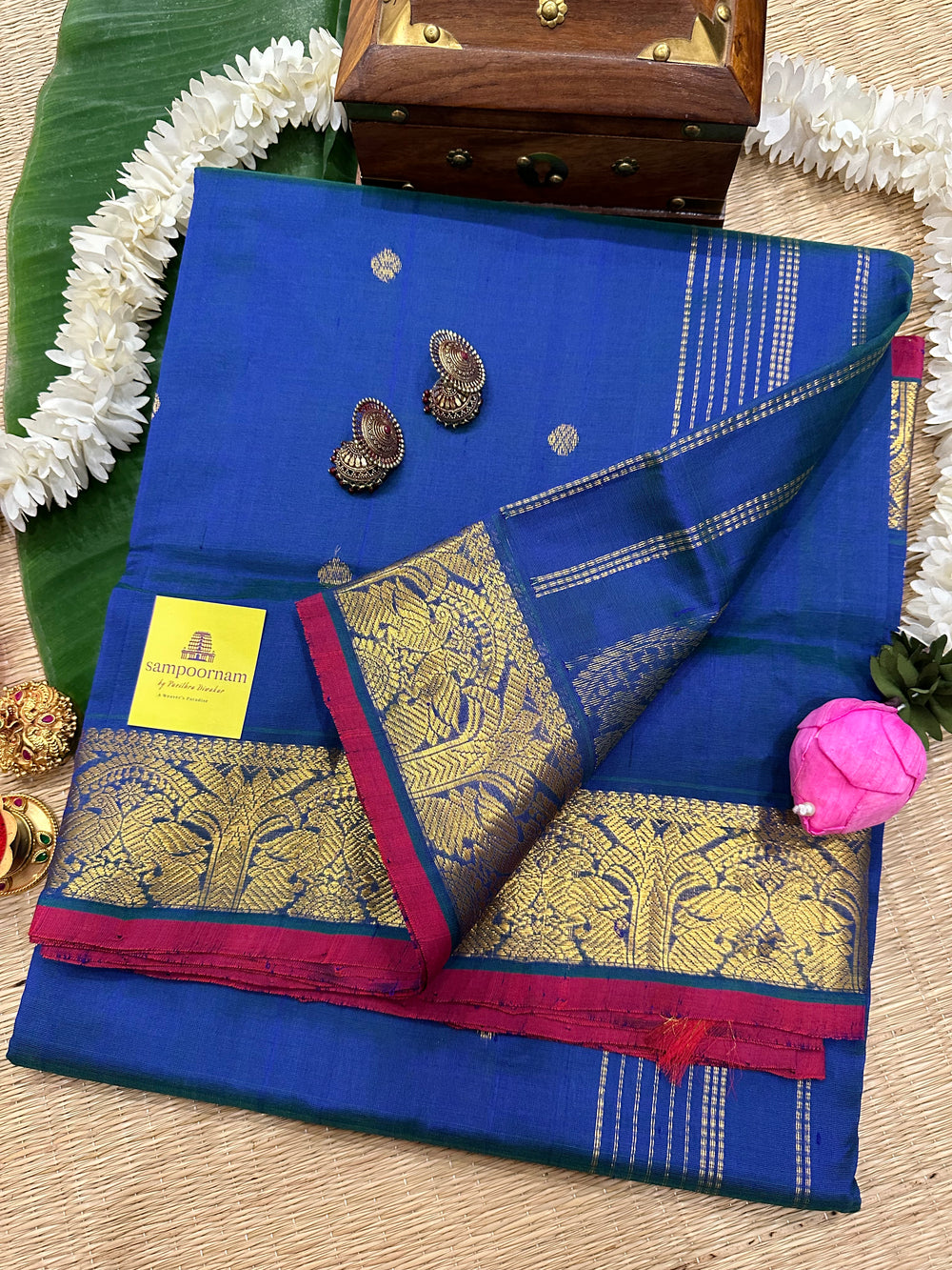 Mayil Kazhuthu Peacock Blue with Zari Butta Silk Cotton Saree