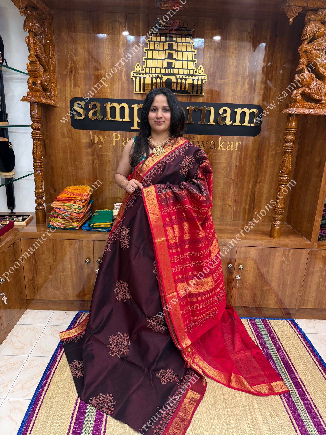 - Sampoornam Creations cannot be held responsible for any damage that occurs to the saree/accessories after purchase due to rain, overuse, stains, incorrect cleaning and care, and other normal wear and tear.
