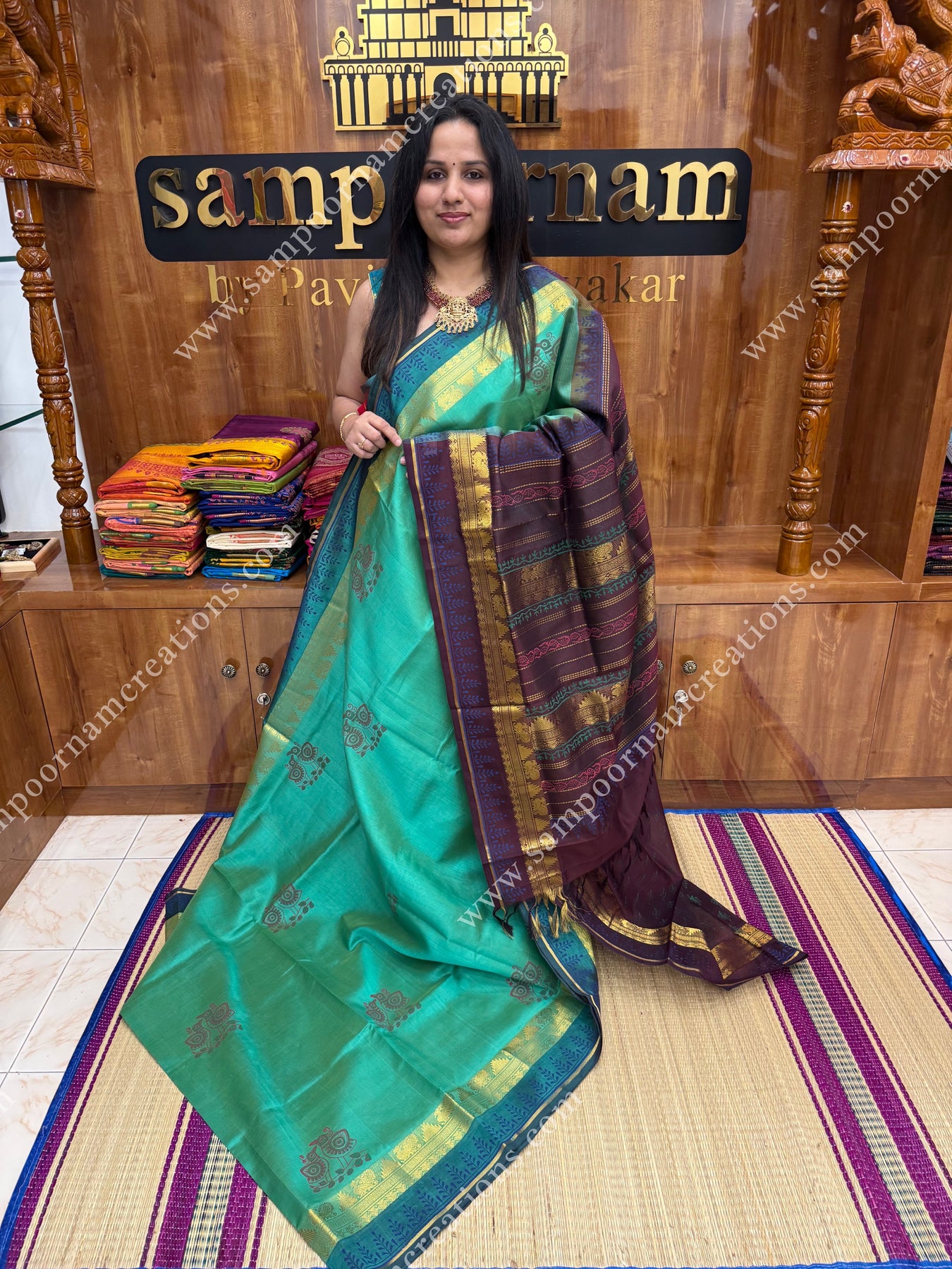 - Sampoornam Creations cannot be held responsible for any damage that occurs to the saree/accessories after purchase due to rain, overuse, stains, incorrect cleaning and care, and other normal wear and tear.