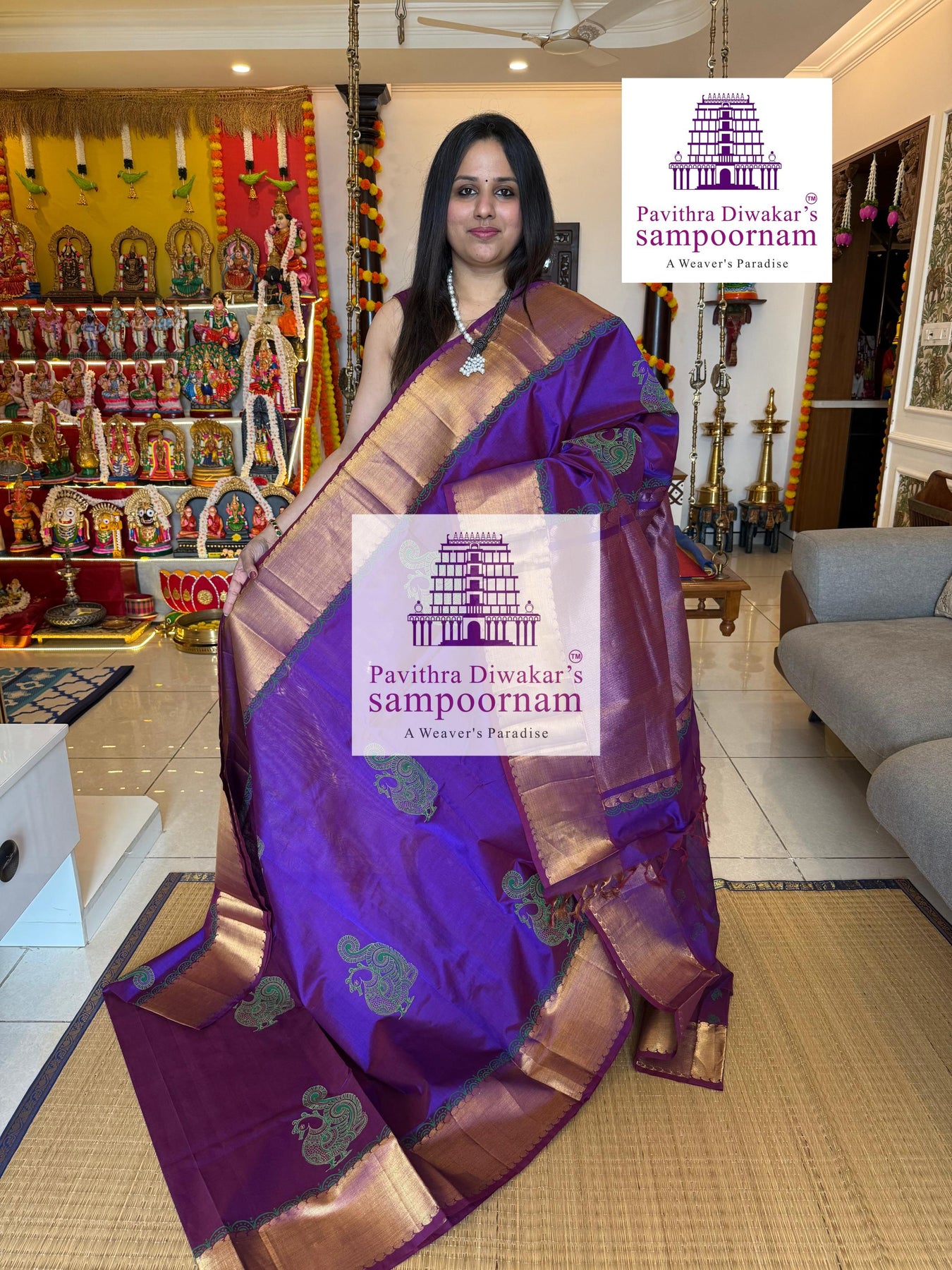 - Sampoornam Creations cannot be held responsible for any damage that occurs to the saree/accessories after purchase due to rain, overuse, stains, incorrect cleaning and care, and other normal wear and tear.