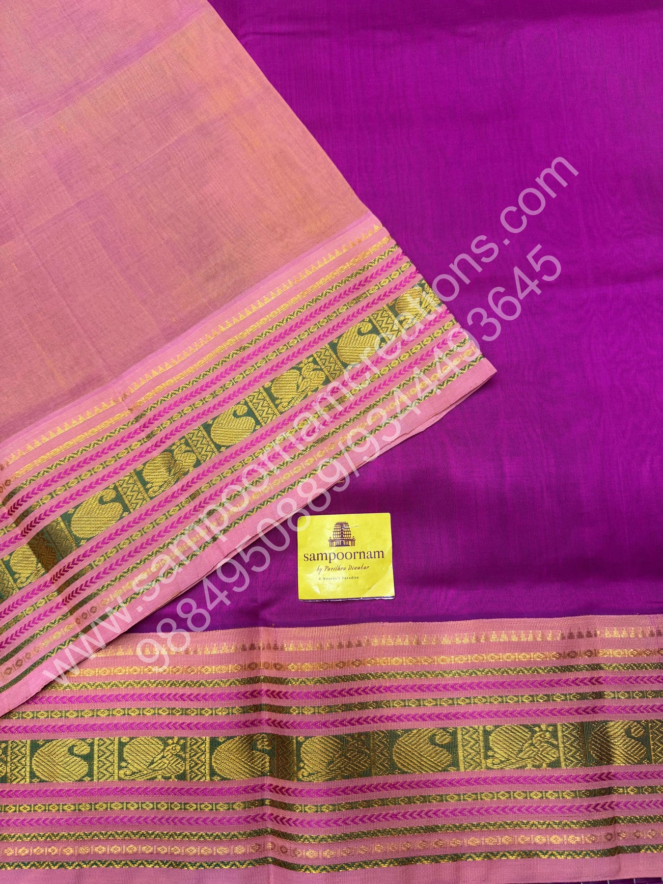 Magenta with Salmon Pink , traditional borders and rich Pallu Korvai Silk Cotton Saree