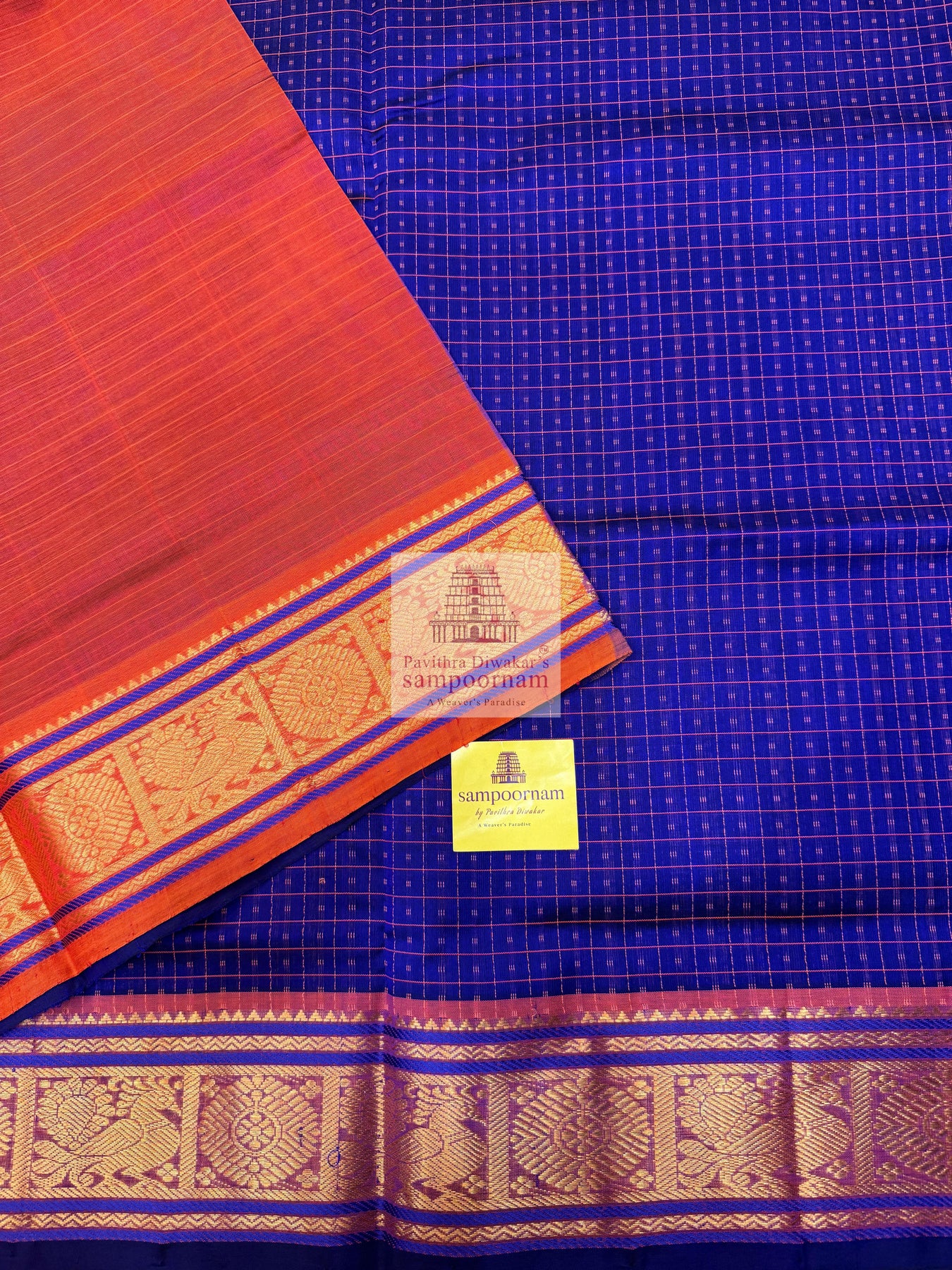 Blue with Orange, , Lakshadeepam butta in the body , traditional borders and rich Pallu Lakshadeepam Silk Cotton Saree