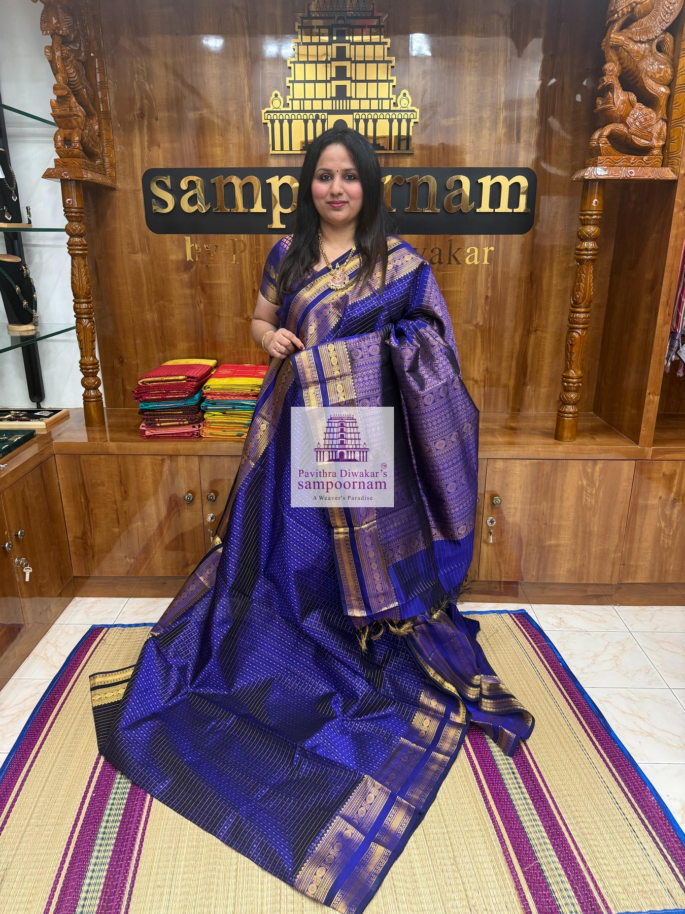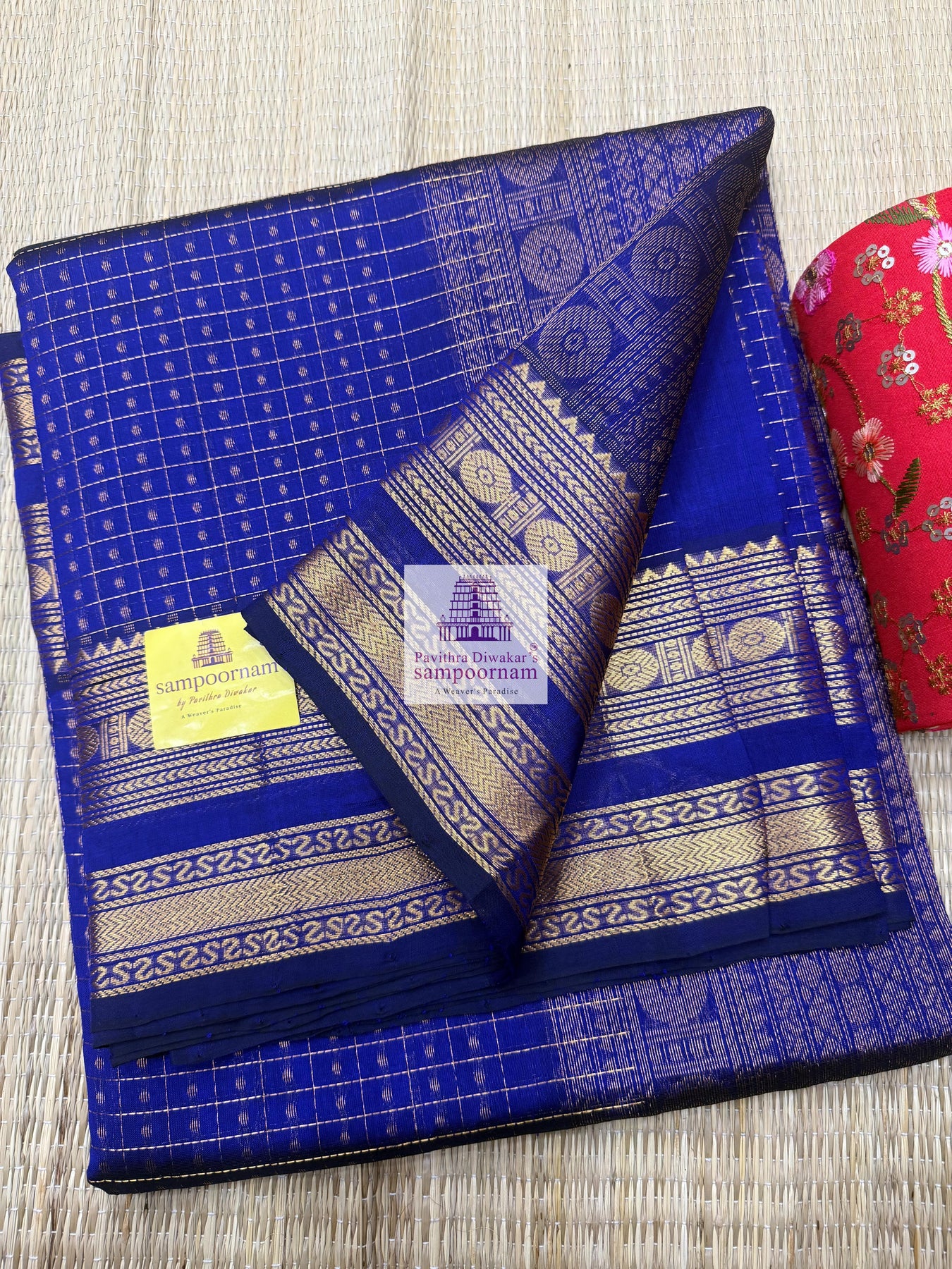 Blue , Zari  Lakshadeepam  Silk Cotton Saree