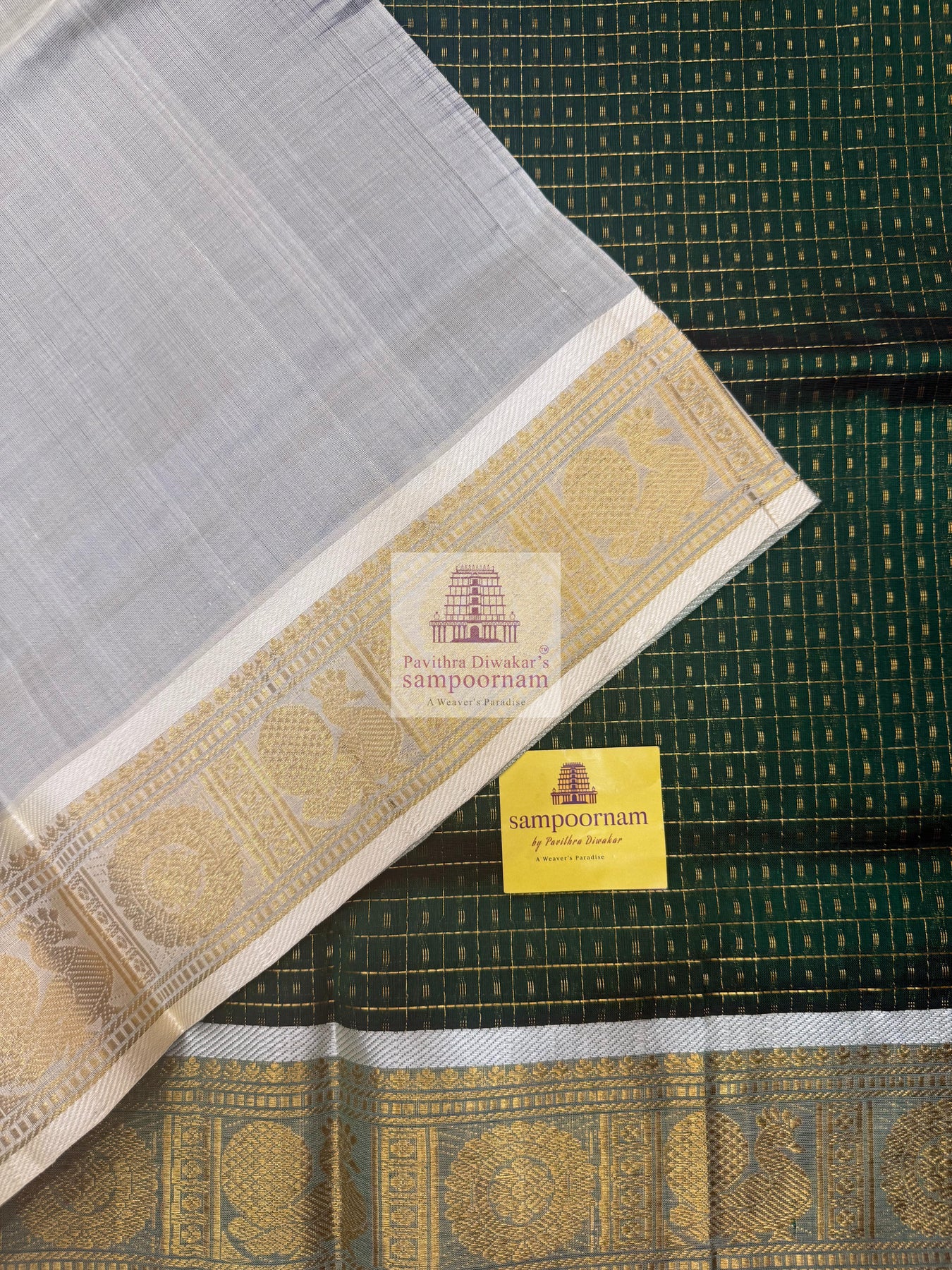 Dark Green with Off White , Zari Lakshadeepam Silk Cotton Saree