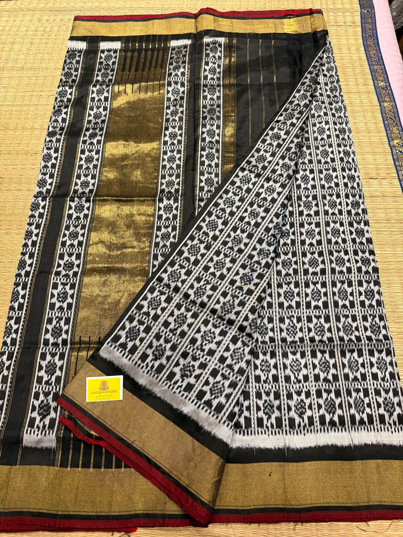 Black with White ,traditional border and rich Pallu Pochampally Ikkat Silk Saree