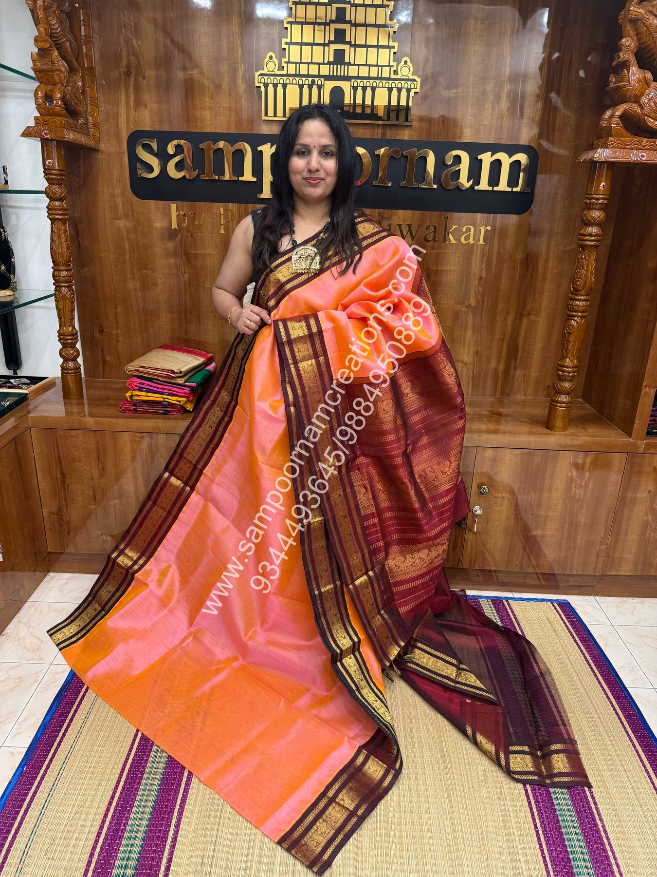 NOTE: We do our best to ensure that our photos are as true to color as possible. We take all pictures under sunlight. The colours you see on your device may vary due to the varying colour reproduction, brightness, resolution and temperature of individual devices.If you'd like more clarity before your purchase, please contact us at+919344493645 or mail us at sampoornamcreations@gmail.com ( MON – SAT between 10:00 am & 08:00 pm )