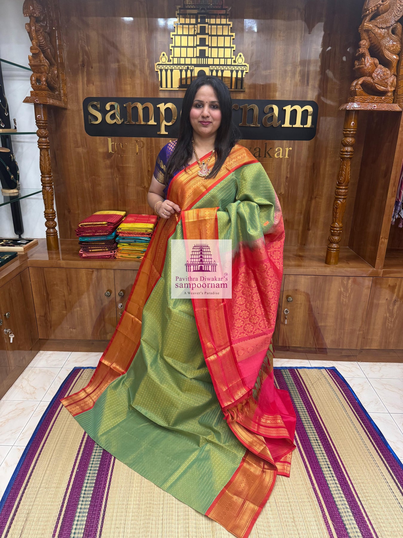 - Sampoornam Creations cannot be held responsible for any damage that occurs to the saree/accessories after purchase due to rain, overuse, stains, incorrect cleaning and care, and other normal wear and tear.