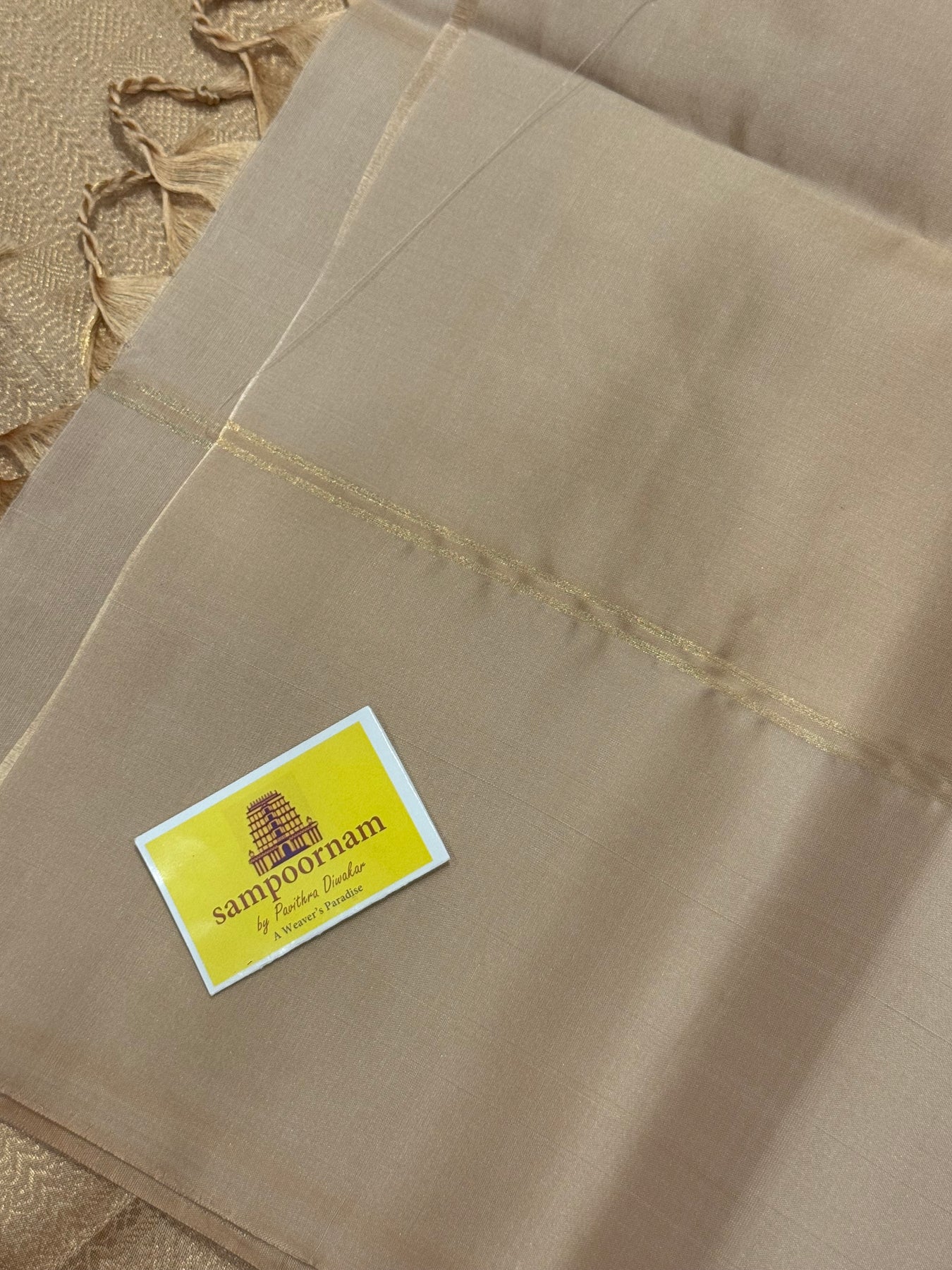Dark Pink with Beige , Zari Mayil butta in the body and grand Pallu , pure soft silk saree